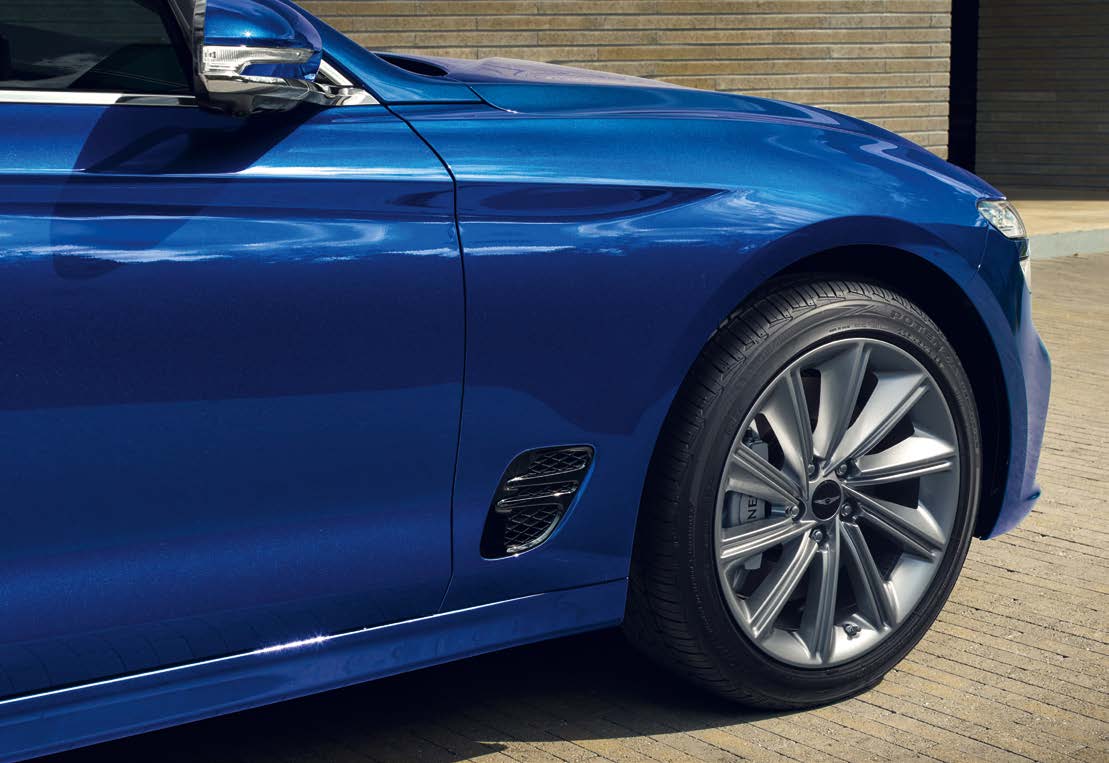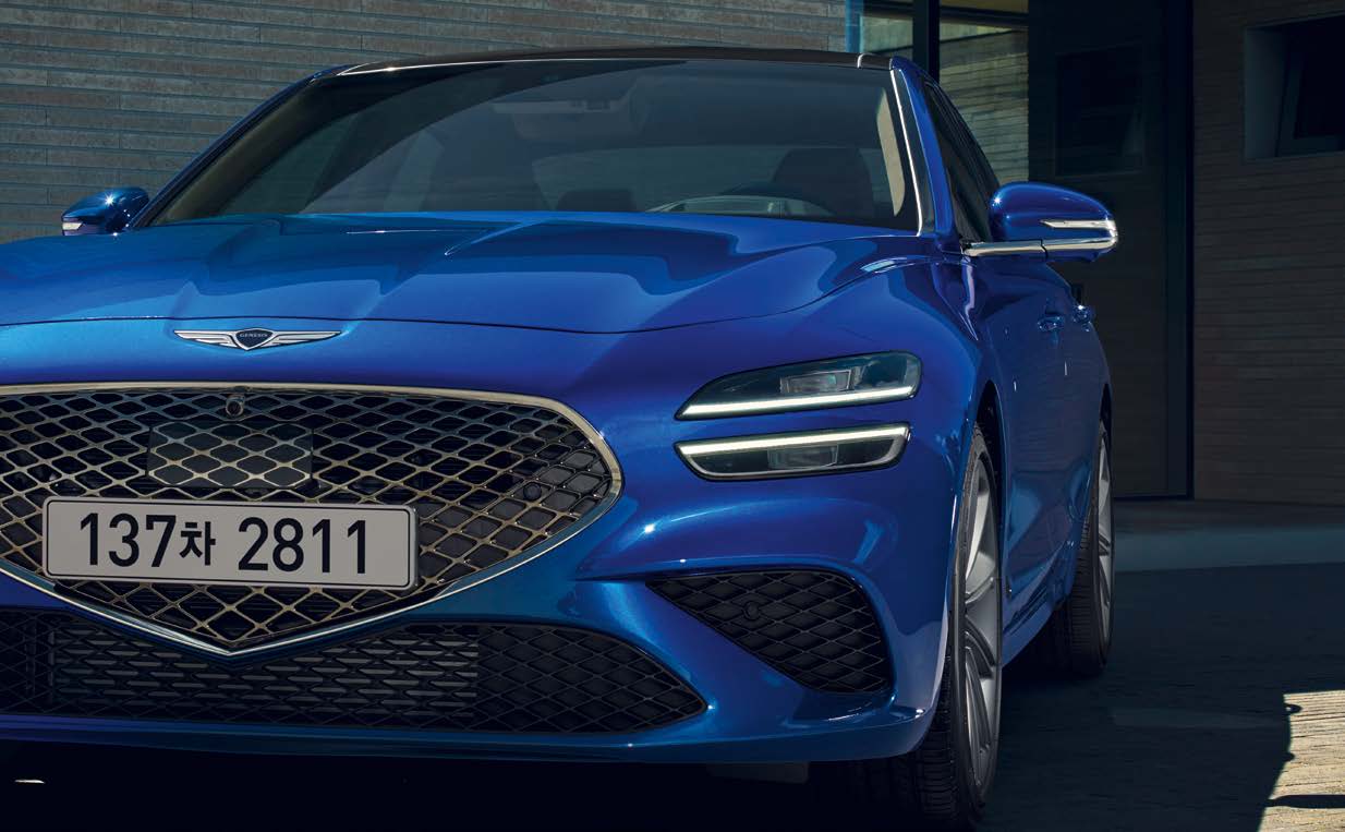 2025 제네시스 G70 슈팅브레이크는 세련되고 차별화된 디자인으로 도로 위에서 시선을 사로잡습니다. 특히 전면 그릴과 스포티한 라인이 인상적입니다.