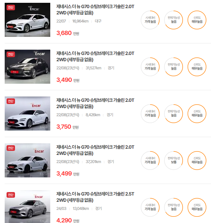 2025 제네시스 G70 슈팅브레이크 중고차 가격, 연식별 시세, 차량 유지비를 고려하는 모든 구매자에게 유익한 정보가 되길 바랍니다.