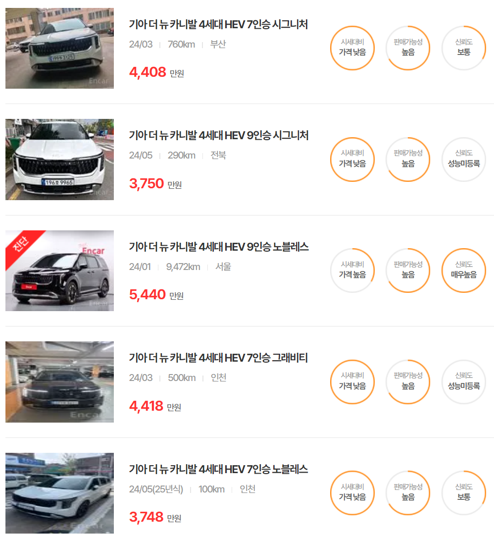 2025 카니발 하이브리드 중고차 가격