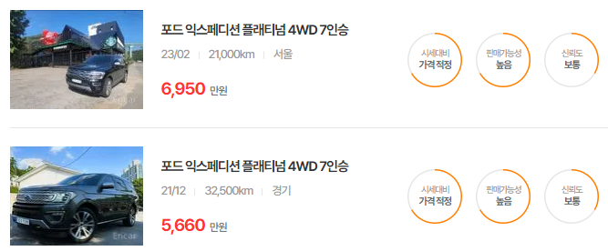 | 포드 뉴 익스플로러 중고차 가격 시세표 | 25년 6월 기준 (0) | 2025.06.08 |