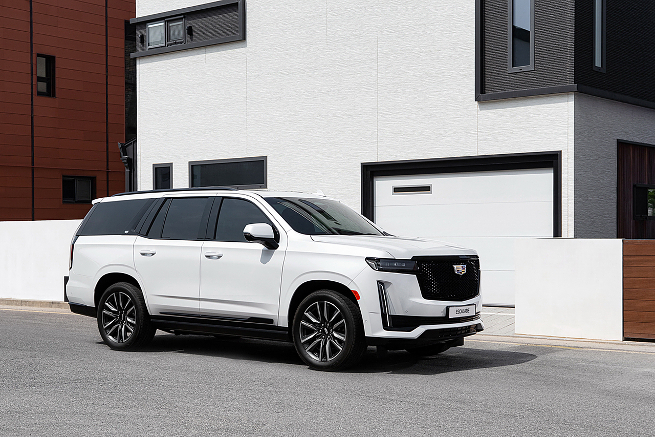 캐딜락 에스컬레이드는 도로 위에서 확실히 눈에 띄는 대형 SUV입니다. 강력한 프론트 그릴과 세련된 LED 헤드램프가 인상적입니다.