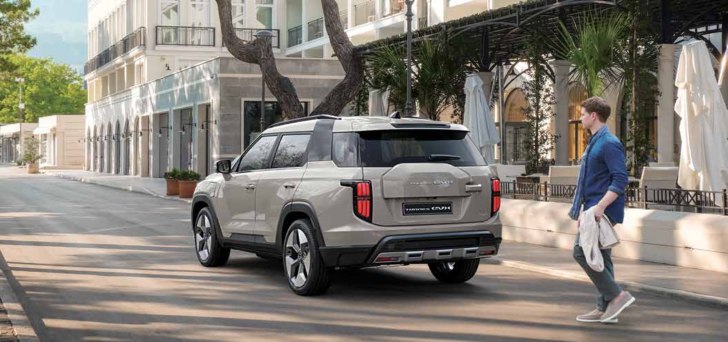 2025 토레스 EVX는 스포티하면서도 세련된 외관 디자인을 채택하고 있습니다. 미래지향적인 LED 헤드라이트와 강인한 라인이 돋보이는 전면부는 차량의 존재감을 확실히 강조합니다.