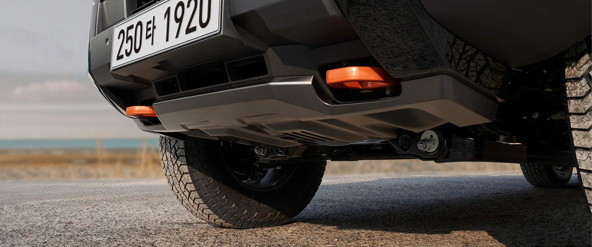 우수한 서스펜션 시스템 덕분에 타스만은 험난한 지형에서도 부드러운 주행 질감을 제공합니다.